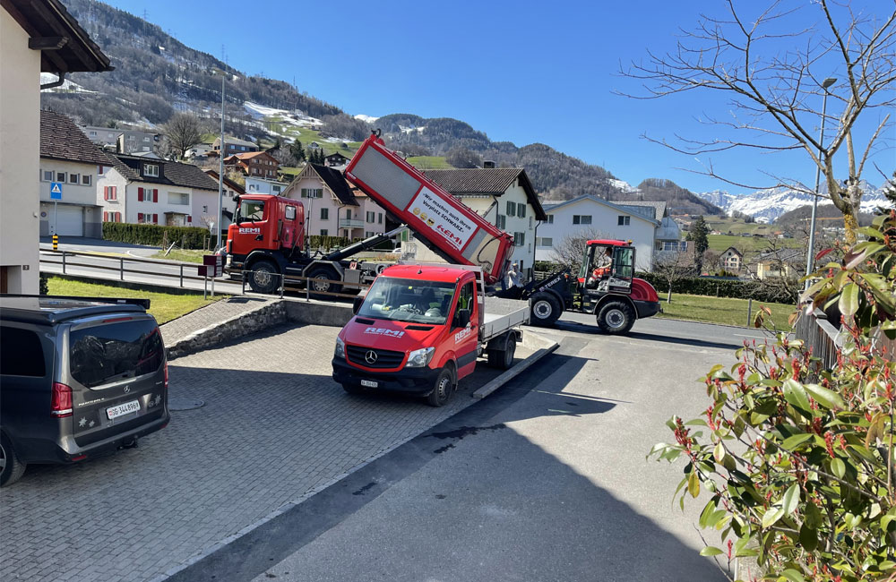 DienstleistungenWir transportieren Sachen von A nach B, räumen den Schnee weg und reinigen Plätze und Tiefgaragen.
